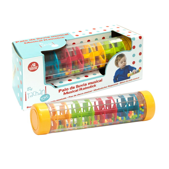 Dale la vuelta al palo de lluvia y estimula los sentidos de los más pequeños. Las vibrantes cuentas y los tranquilizantes sonidos de las gotas de lluvia los relajarán. El diseño ergonómico facilita el agarre. Recomendado para bebes a partir de 1 año.