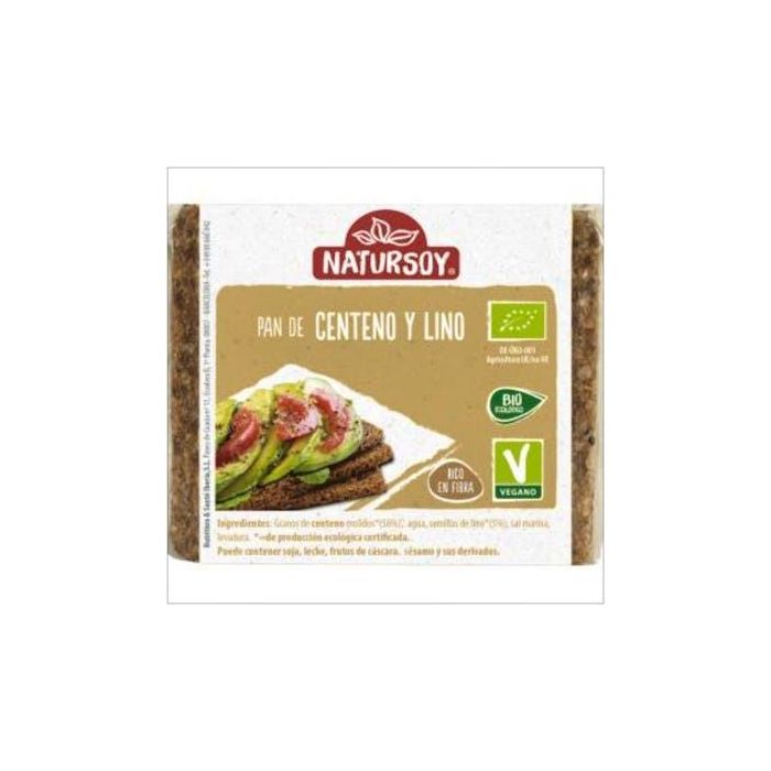 NATURSOY Pan de Centeno y Lino 500Gr. Pan Vegano con Granos Integrales de Centeno y Semillas de Lino Ecológicas