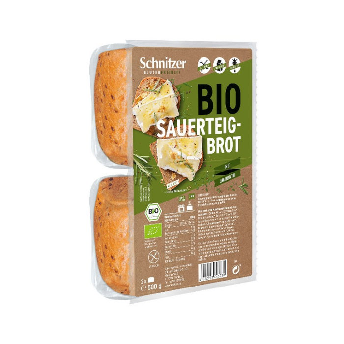 Agua, 23% fécula de maíz*, masa fermentada de arroz* (harina de arroz*, agua), 10% harina integral de amaranto*, linaza*, pipas de girasol*, SÉSAMO*, aceite de girasol*, harina de arroz*, cáscara de semilla de psyllium*, fibra de manzana*, proteína de guisante*, dextrosa*, levadura*, sal marina, espesante: harina de guar*, xantano, especias*.