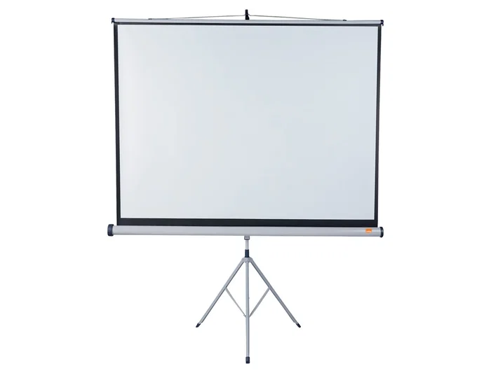 Disponibles en diferentes tamaños hasta un ancho de 2 m, las pantallas de proyección con trípode Nobo disponen de una brillante superficie blanca mate con un borde distintivo de color negro que garantizan una imagen detallada y nítida. Flexible para proyección digital o suspendida y totalmente móvil, la pantalla dispone de un brazo suspendido para inclinarse hacia delante y puede retraerse a su alojamiento para quedar protegida de posibles daños.