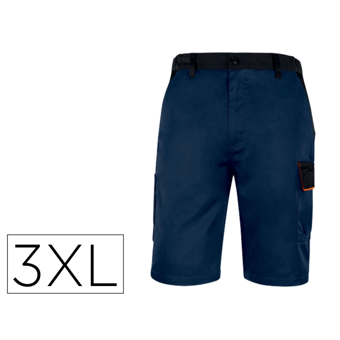 Deltaplus Bermuda de Trabajo Panostyle, Tejido 65% Poliéster/35% Algodón 235 g/m², Cintura Elástica, 5 Bolsillos, Azul Naranja, Talla 3XL