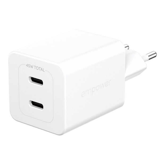 PanzerGlass empower™ by ® Turbo 45W Charger incl. 2 x USB-C | EU Plug | Silver White, Interior, Corriente alterna, Blanco