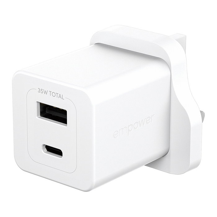PanzerGlass empower™ by ® Turbo 35W Charger incl. USB-C + USB-A | UK Plug| Silver White, Blanco