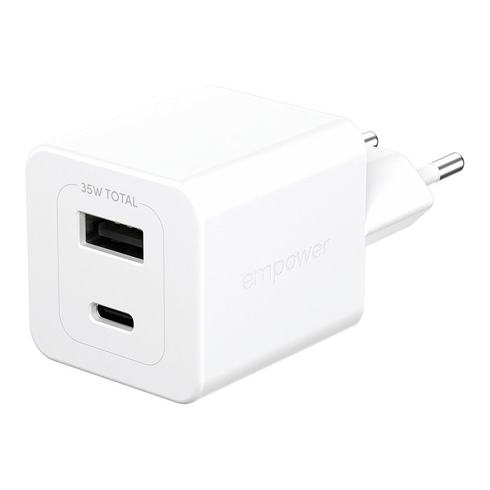 PanzerGlass empower™ by ® Turbo 35W Charger incl. USB-C + USB-A | EU Plug | Silver White, Interior, Corriente alterna, Blanco