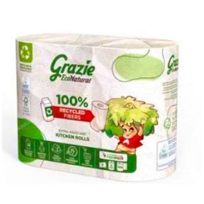 Indicaciones: Grazie EcoNatural es papel 100% orgánico hecho a partir de cartones de bebidas reciclados, sin tintes ni blanqueadores. Fiberpack® es el resultado de un proceso de producción innovador. Está hecho con fibras finas para garantizar una resistencia y absorción extraordinarias. El papel Grazie EcoNatural viene en un color natural porque se elabora sin blanqueadores ni colorantes. Papel de cocina suave, extra resistente, súper absorbente y dermatológicamente testado. Certificado Ecolabel, distintivo de excelencia ambiental emitido por la Unión Europea que garantiza el cumplimiento de criterios de protección ambiental durante todo el ciclo de vida de un producto, y FSC®, certificación que garantiza que la materia prima utilizada para fabricar un producto de papel proviene de bosques gestionados de manera responsable.