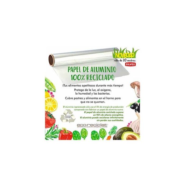 SILVEX Papel de Aluminio Cocina 100% Reciclado Rollo 20M