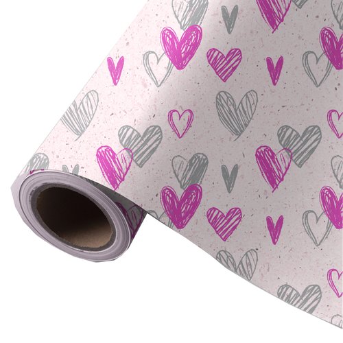 Papel De Regalo Bobina Wonder Wrapper Caña De Azucar 31 Cm X 85 M (2 Kg Aprox.) Todo Año Corazones Rosa Y Gris