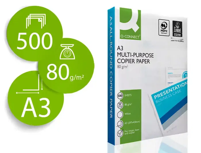 Q-connect copy Papel Fotocopiadora Economy Din A3 80 Gramos Paquete 500 Hojas Certificado PEFC