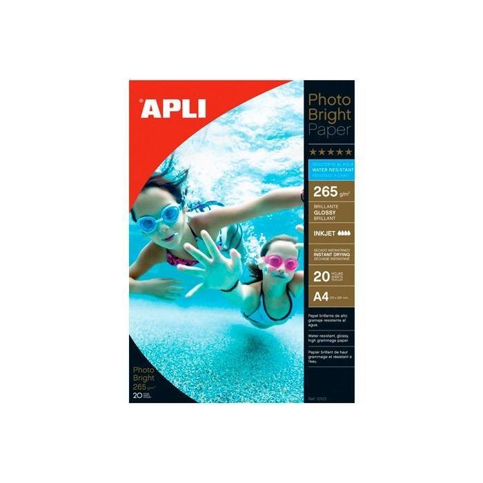 Apli Papel Fotográfico Profesional Photo Bright A4 265gr Inkjet Resistente Al Agua Paquete 20 Hojas Blanco Brillo