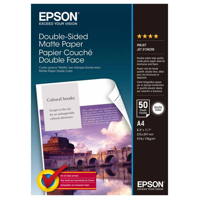 Epson Papel Mate Doble Cara (Double Sidez Matte Paper) A4, 178g.50 hojas
