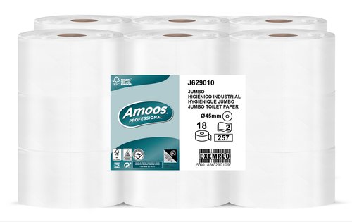 Papel Higienico Amoos Professional Jumbo 2 Capas 257 Servicios 90 Metros Blanco (Set de 18)