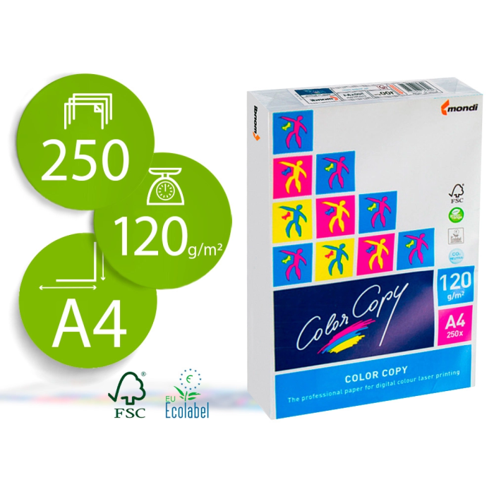 Color copy Papel Fotocopiadora Multifuncion Din A4 120 Gramos Paquete 250 Hojas Blanco