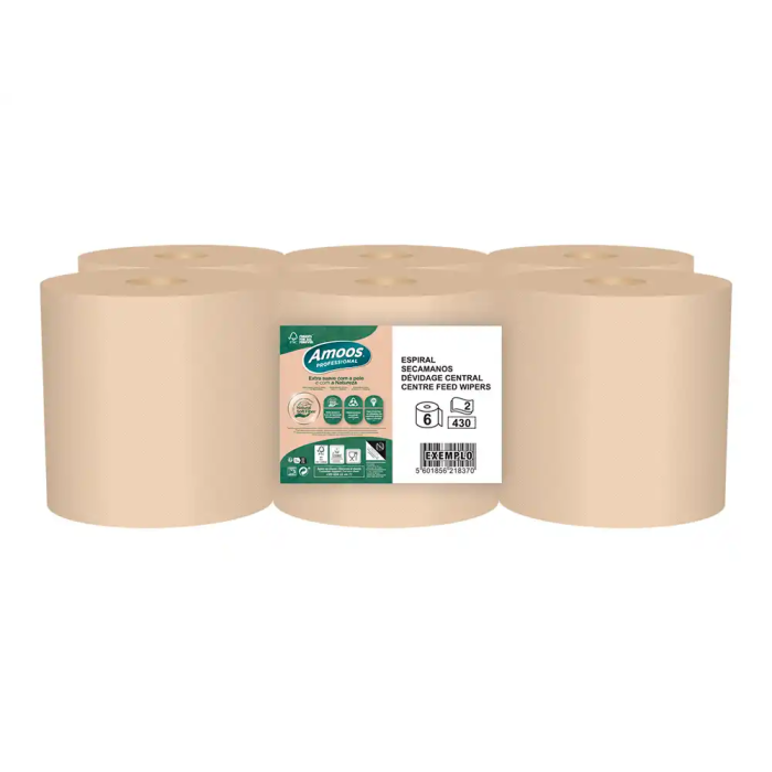 Amoos Papel Secamanos Naturally Soft 2 Capas Pasta Cruda Ecolabel Paquete 6 Rollos 125 m Certificado Celulosa Virgen