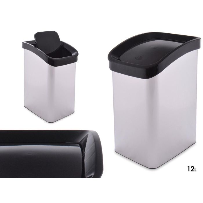 PAPELERA PLASTICO BASCULANTE PLATEADA 12L
