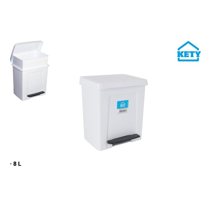 Kety Cubo con Pedal 8L con Cubeta Interior, Dimensiones: 20 cm Ancho x 28 cm Alto x 25 cm Largo