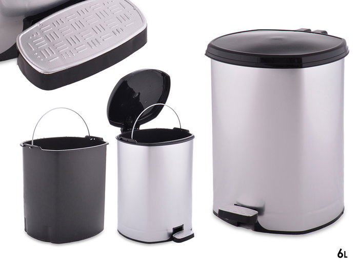 PAPELERA PLASTICO PEDAL PLATEADA 6L