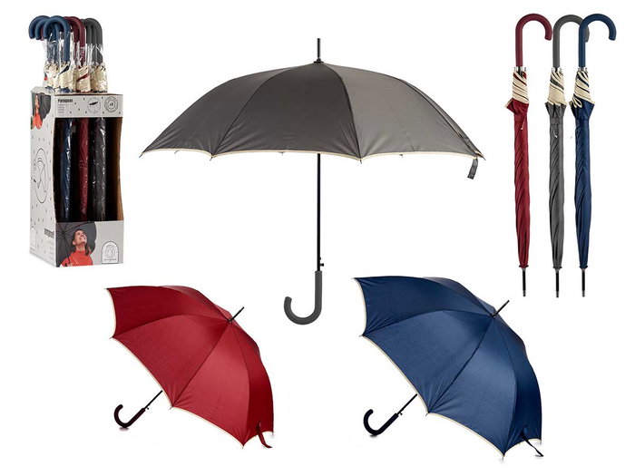 Arte Regal Paraguas de 8 Varillas, Diámetro Abierto 95 cm, 3 Colores: Azul, Gris, Rojo con Borde Crema, Plegado 86 cm, Fibra y Metal (12 Unidades)