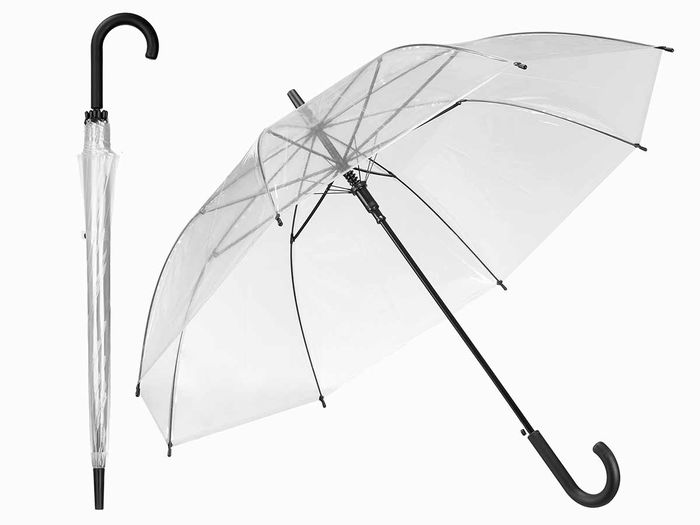 - Diametro: 58 cm. Eje central de acero anonizado. Varillas de acero: 8. Autoapertura. Mango curvo de plastico en negro. Todos los accesorios negros