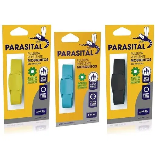 Pulsera repelente Parasital de la marca Zotal, diseñada para ofrecer protección contra insectos de forma cómoda y discreta. Una solución práctica y sin complicaciones para actividades al aire libre.