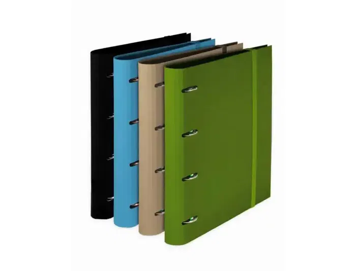 Expositor 8 Carpeblock extra forrado acabado touch. 4 anillas de 35 mm. Con recambio interior de 120 hojas de 90 g. Colores pastel