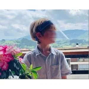 Pardo Pantalla facial para niños ajustable mediante goma azul