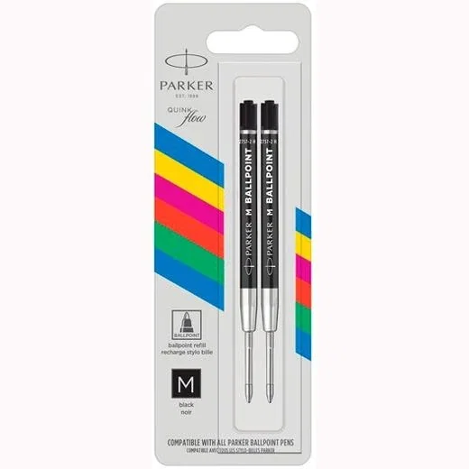 La tecnología de punta de bolígrafo Quinkflow de primera calidad de Parker da como resultado una escritura fácil de leer, sin borrones ni tartamudeos, y garantiza que la tinta se seque rápidamente. Constantemente oscuros e increíblemente confiables, y certificados para mejorar el almacenamiento y la seguridad de los documentos, los recambios para bolígrafos PARKER son el compañero perfecto para la escritura diaria. Utilice recambios de bolígrafo Parker QUINKflow auténticos para disfrutar de una experiencia de escritura refinada y uniforme. Cada blíster contiene 2 recambios negros - punta media.