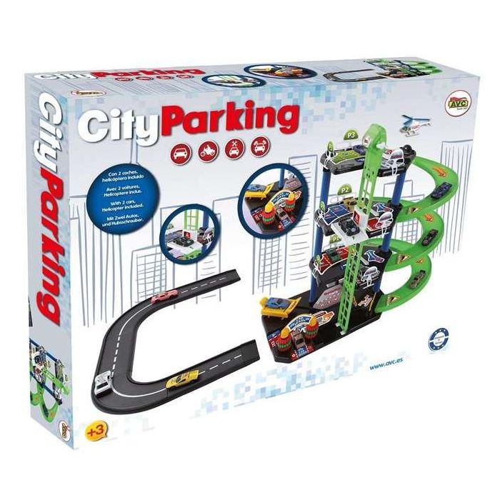 AVC Parking City 3 Plantas con 2 Coches Metal y Helicoptero, 12 Piezas