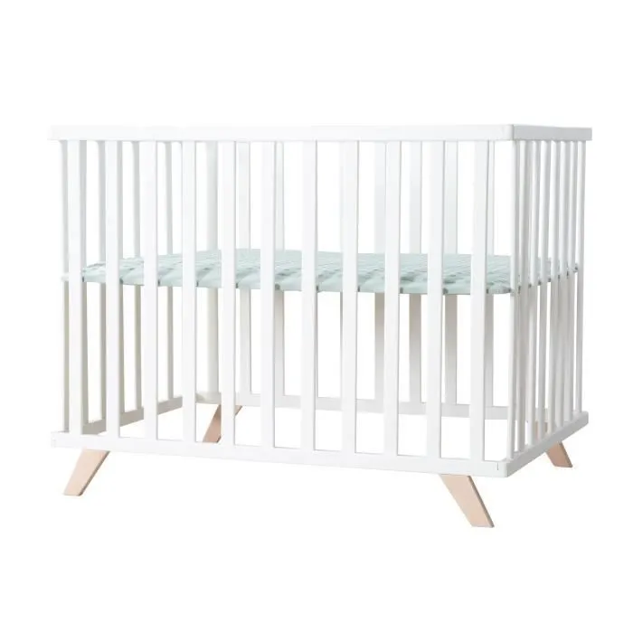 Parque infantil para bebés - ROBA - 75 x 100 cm - Incluye tapete de parque infantil 'Lil Planet' verde esmerilado - Blanco