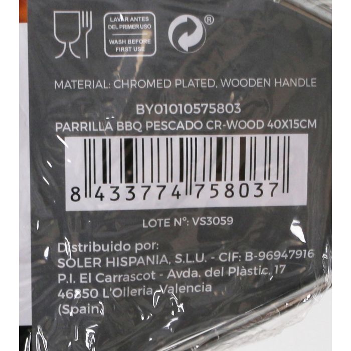 Parrilla Bbq Pescado Cr-Wood 40X15Cm Algon Bbq