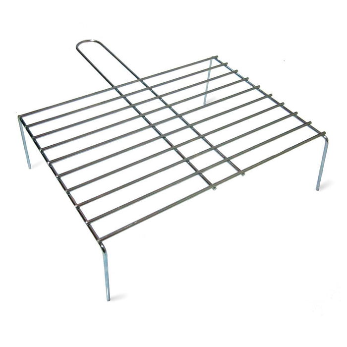Parrilla con pie simple 30x27cm con acabado cincado gourmet kitchen. el producto cumple con la normativa ce1935/2004 siendo apta para el contaco con alimentos.