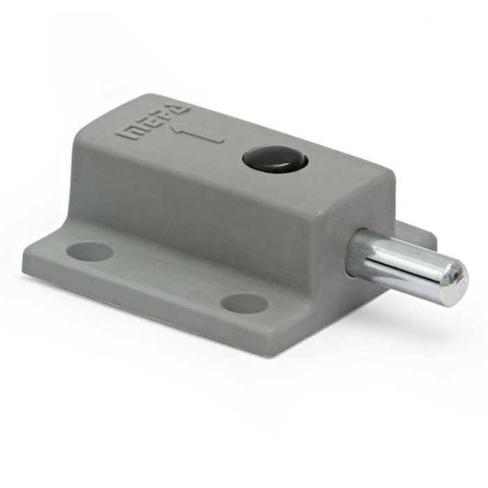 El pasador-pulsador automático para mesa en color gris, de la marca ALK es un sistema de bloqueo para fijar o liberar superficies móviles, como alas extensibles, tableros abatibles de mesa. Su diseño automático facilita el accionamiento rápido con un simple pulsador integrado.