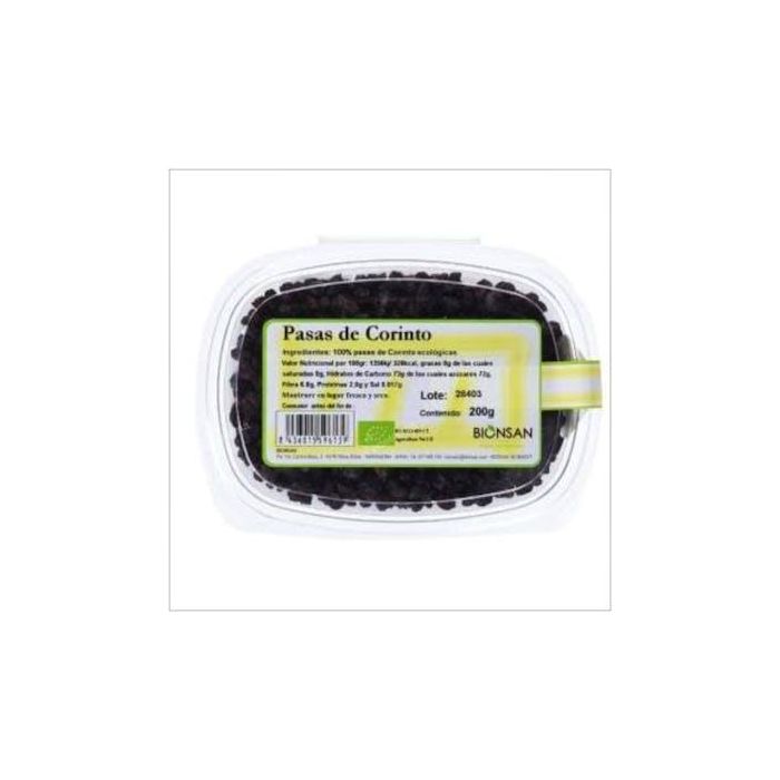 Indicaciones: Uvas que se han secado para su posterior consumo. Se trata de un tipo de fruta deshidratada que aporta una gran fuente de energía al consumirlas. Son originarias de Corinto, Grecia. No tienen semillas y sus pasas son pequeñas y dulces. Producto apto para vegetarianos y veganos.