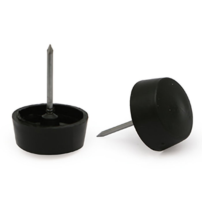 La pata plástico negro YOTA d34-29 con clavo de la marca Q&Q sirve para dar soporte de plástico a las patas de muebles. Incluye un clavo integrado que facilita su fijación directa a la base del mueble.
