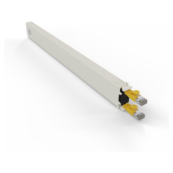 Build your own patchbox.one by filling your Frame with up to 24 Cable Cassettes. Have it your way and choose from various cable types, colours, connector types and cable lengths. With its modular system, you can exchange cassettes within seconds and easily adapt the rack as you need it. The Cat.6a cables inside the Cassette meet the ISO standards, and you can power devices with PoE (STP) and PoE++ (UTP), or choose the most flexible and bend-insensitive Fiber Optic Cables available, made from Corning® ClearCurve® Fiber.