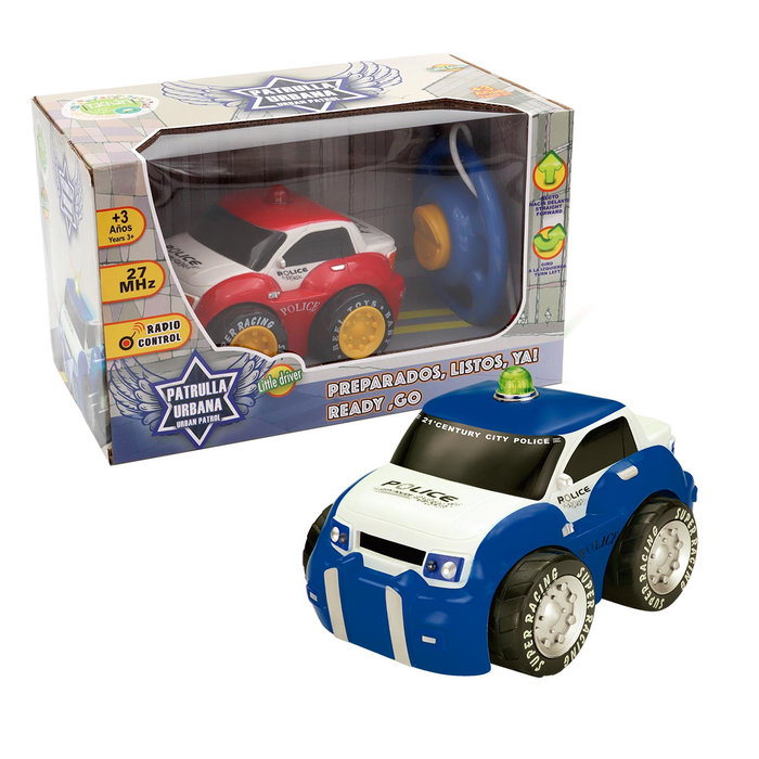 Coche infantil de Policía con Radio Control. Este coche incluye luces que atrae la atención del niño haciéndo más real el juego. Se trata de un primer radio control para niños con funciones básicas y un diseño muy atractivo para recrear el juego.