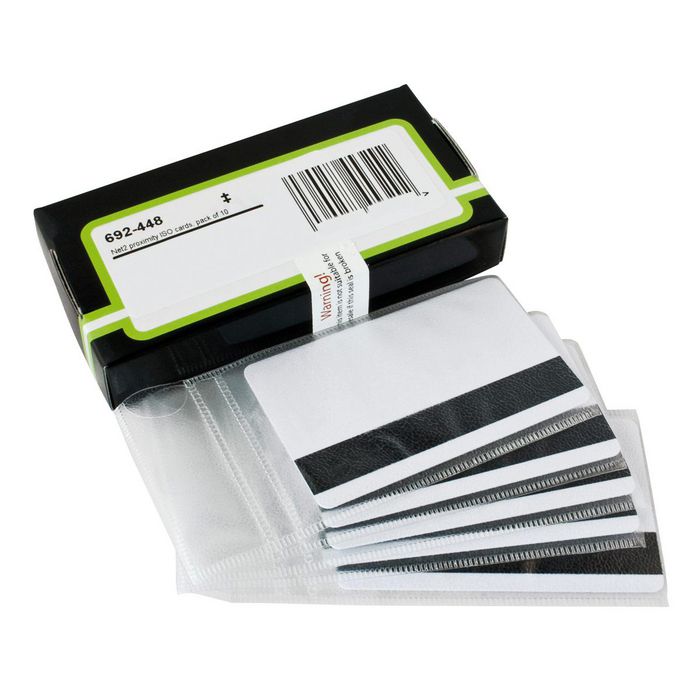 Proximity tokens and magstripe cards for use with the Net2 system. The tokens are supplied in packs of ten. Each token is programmed with an 8 digit unique number.