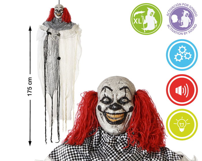 Crea una escena de miedo inolvidable con este payaso terrorífico de 175 cm. sus efectos de luz, sonido espeluznante y movimiento lo hacen perfecto para decorar entradas, fiestas o pasajes del terror. ideal para quienes buscan una ambientación fuerte y realista en halloween o eventos temáticos. atraerá todas las miradas... y unos cuantos gritos.