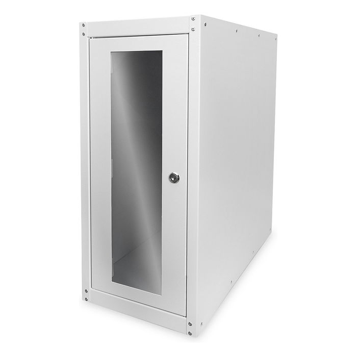 Digitus Carcasa de ordenador con puerta de vidrio, con ruedas y cerraduras, con rendijas de ventilación, Rack o bastidor independiente, Bloqueo del teclado, Gris