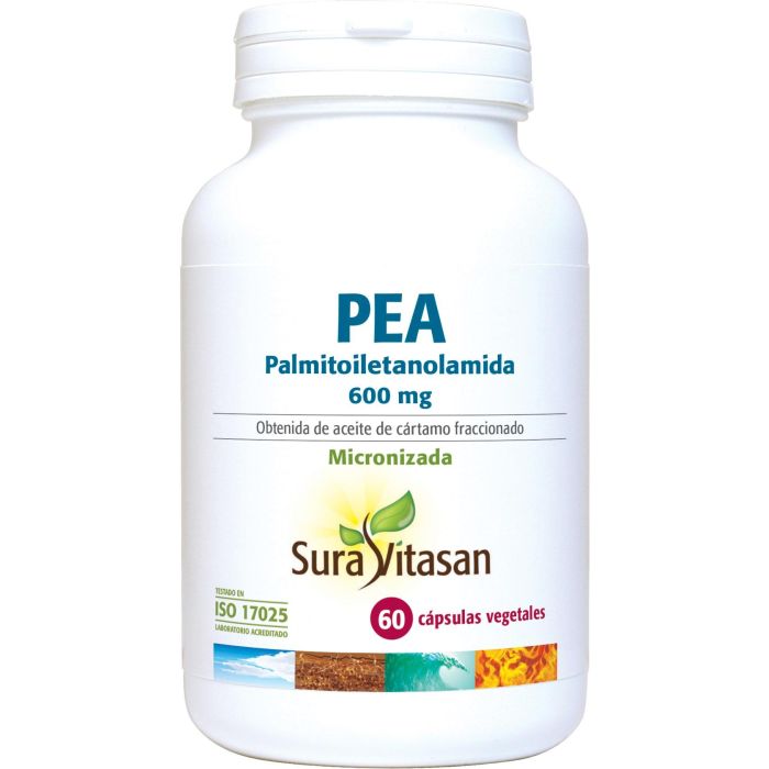 Palmitoiletanolamida (PEA) 600mg, antiaglomerantes (estearato de magnesio vegetal y dióxido de silicio), cápsula vegetal (agente de recubrimiento: hidroxipropilmetilcelulosa; humectante: agua purificada).