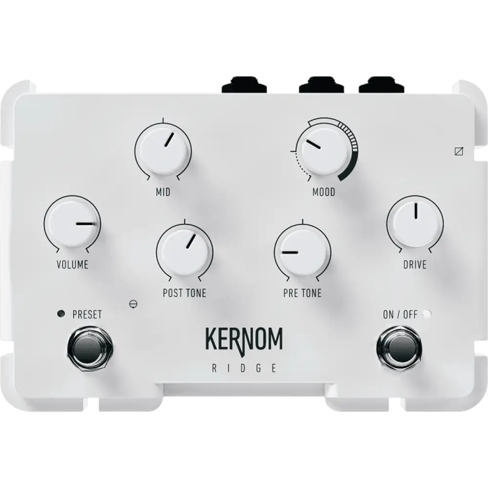 El Pedal Overdrive RIDGE de Kernom está equipado con un circuito de saturación 100% analógico que le aporta un grano natural, con dinámica y calidez. En términos de diseño, su aspecto muy cuidado y refinado ha sido además premiado con el premio Red Dot en 2023.Y es que el corazón de los pedales Kernom reside en el circuito patentado Analog Morphing Core. No es una simulación o emulación digital de sonidos Overdrive. Son diodos analógicos reales que saturarán y producirán distorsiones con una dinámica inigualable. Con una sección EQ avanzada, dispones de la capacidad de personalizar y ajustar el sonido a tus necesidades, sin complejos ni fronteras. La configuración PRE TONE, exclusiva de los pedales Kernom, controla el filtro EQ colocado antes de atacar el efecto Overdrive y te permite ajustar su capacidad de respuesta según tu instrumento y forma de tocar. El POST TONE te permite esos ajustes finales que te realcen entre los demás instrumentos. Y para integrarte y tener más posibilidades dispones de salida para pedal de expresión, conexionado MIDI y 128 presets programables. RIDGE MOODNuestro distintivo botón MOOD te permite explorar una gama ilimitada de variaciones de recorte de Overdrive. Tanto si prefieres un recorte suave como uno duro, características simétricas o asimétricas inspiradas en el comportamiento de los diodos de Germanio o Silicio, nuestra circuitería analógica aumentada te permitirá embarcarte en un viaje sónico que abarca todo el espectro de los tonos drive. Con un simple giro de este control podrás pasar desde un impulso limpio y extremadamente dinámico hasta uno de saturación de alta ganancia, y es que la versatilidad del RIDGE se adapta a todos los géneros musicales y a todos los guitarristas.