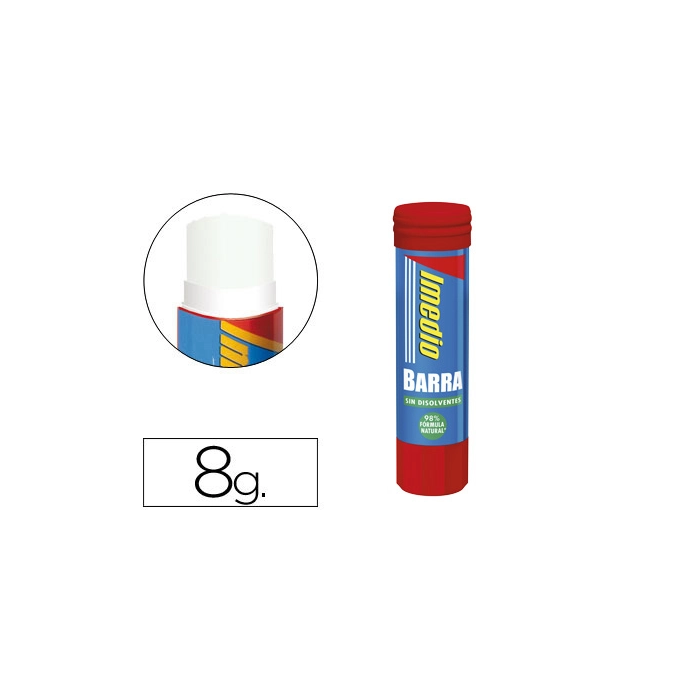 Imedio Barra Adhesiva Sin Disolventes 8,2g 7000570 para Manualidades, Hogar y Oficina, 98% Ingredientes Naturales