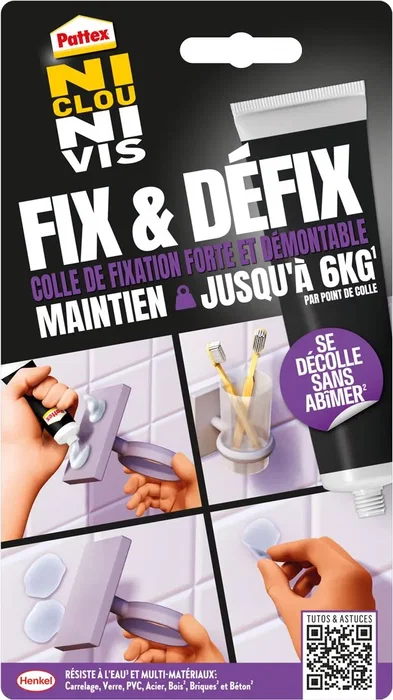 Pegamento Fijador - PATTEX - 2970856 - Sin clavos ni tornillos - Fix & Défix - Tubo - 44g