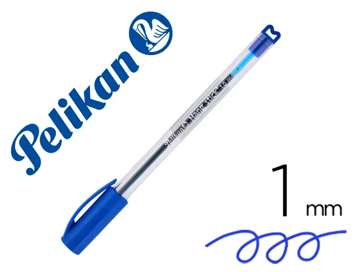 Pelikan Bolígrafo Hang Stick Azul con tinta de aceite, trazo 0.4 mm, empuñadura ergonómica triangular y gancho para colgar