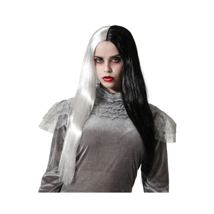 Peluca Vampiresa Larga Lisa Blanco Y Negro Morena 60 cm Halloween Adulto