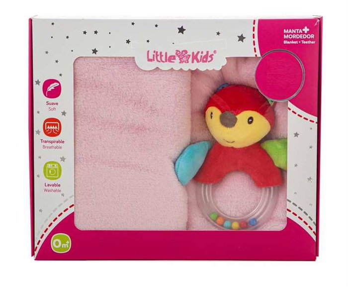 El set de peluche de la marca BigBuy Fun incluye una cuidada combinación diseñada especialmente para los más pequeños, compuesta por una manta coralina de 100 x 75 cm y un peluche sonajero con forma de zorro de 16 cm. Fabricado con poliéster, un material suave y ligero, este conjunto garantiza una textura agradable al tacto, apta para bebés desde el nacimiento, gracias a sus características de seguridad y comodidad. La manta coralina ofrece una superficie cálida y envolvente, ideal para arropar y proporcionar confort durante el descanso o el juego, siendo su tamaño suficientemente práctico para usar en cochecito, cuna o para llevar en el día a día. Por su parte, el peluche sonajero combina el atractivo visual de un diseño infantil reconocible con la funcionalidad de un sonajero, estimulando los sentidos del bebé a través del sonido suave que produce y favoreciendo el desarrollo psicomotor. Este artículo está diseñado para cumplir con las exigencias de un producto seguro para la infancia, sin piezas pequeñas o accesorios que puedan representar riesgo. Fabricado con materiales de calidad procedentes de España y China, este set ofrece una solución integral para regalar o equipar el entorno del recién nacido, facilitando tanto el descanso como el entretenimiento y la estimulación temprana. En conjunto, el set caja + manta coralina 100 x 75 cm + sonajero zorro 16 cm representa un producto funcional y cómodo que responde a las necesidades esenciales en la etapa inicial del bebé.