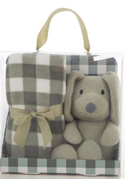 Peluche Perro 26 cm con manta a cuadros 90x75 cm - Modelos surtidos