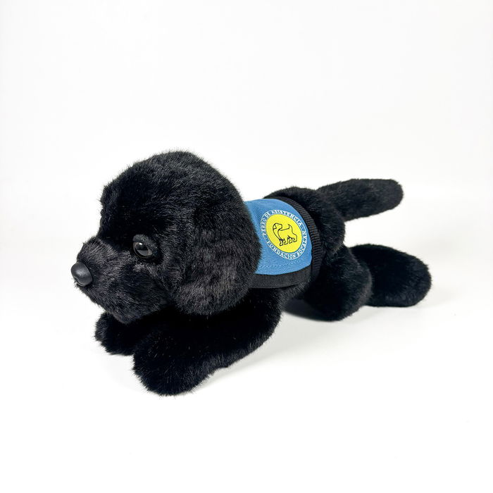 Peluche Labrador Negro 21Cm Con Chaleco. Con la compra de este peluche contribuirás con la Fundación Bocalán para el adiestramiento de los animales con el fin de mejorar la autonomía de personas con discapacidad.
