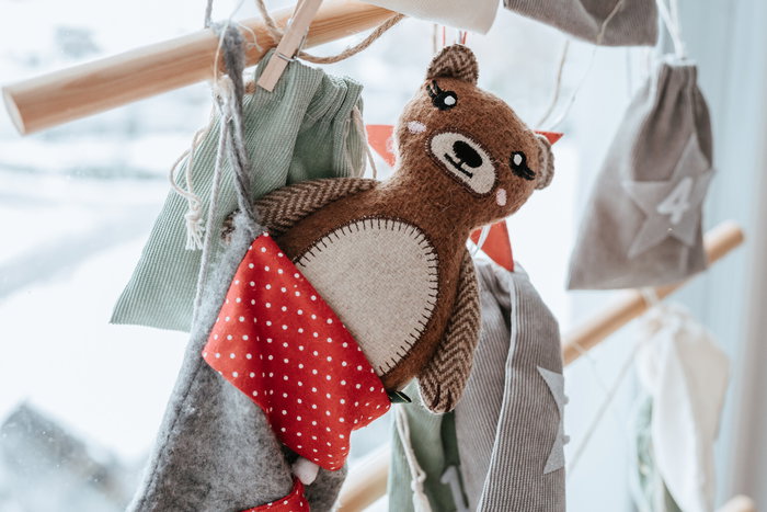 Juguete Fyn oso, 20 cm, hecho con poliéster y lana reciclada, suave, cómodo, con caucho chirriador en el interior