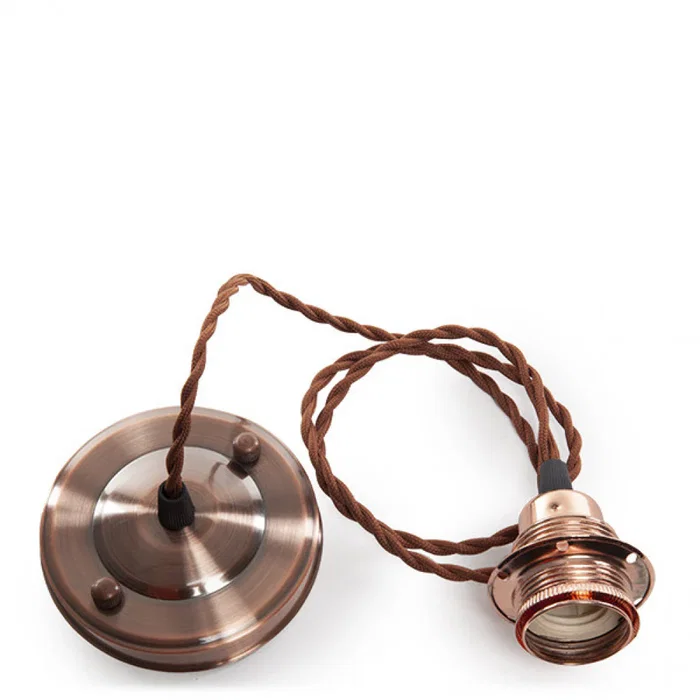 El Pendel E27 con Cable incorpora un cordón cubierto con tela,un rosetón y portalámparas de metal. Núcleo de cobre, funda de silicona y el revestimiento exterior de tela para asegurar la resistencia del producto y al mismo tiempo una flexibilidad versátil del cable, a fin de asegurar una fiabilidad sólida en el tiempo. Puede ser instalada directamente a la red eléctrica (230VAC y 50Hz) y fijado al techo, ya que viene con los elementos de fijación incluidos (incluye tornillos) mediante una lámina con dos agujeros para ser fijada con tornillos, tiene un agujero central de 10mm de donde sale el cable simple que se encarga de sostener la lámpara. Largo cable 1000mm. Ideal para todo tipo de espacios, combina estupendamente con las bombillas LED de filamento. La luz que emita dependerá de la bombilla que instalemos. Esto nos permite personalizar plenamente el tipo de iluminación que queremos para cada determinado ambiente, desde la luz más potente hasta la más sutil, en función de las necesidades de cada espacio. Su uso puede ser en solitario o junto a varias lámparas a diferentes alturas, creando un conjunto muy atractivo visualmente. Más allá de la iluminación en viviendas, esta lámpara nos permite aportar un toque retro en espacios comerciales como restaurantes o tiendas.