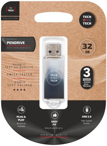 Pendrive 32gb tech one tech be b&w usb 2.0 blanco y negro degradado